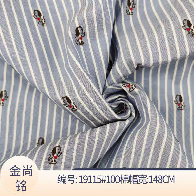 全棉色织提花连衣裙面料 全棉小狗设计提花条纹布料