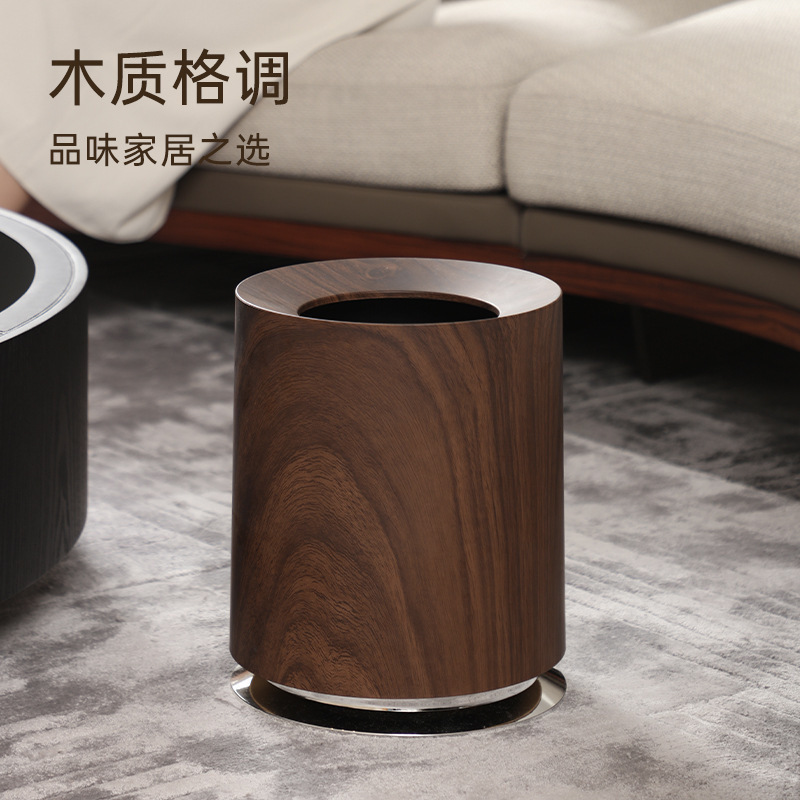 胡桃木纹垃圾桶家用客厅卧室大容量轻奢创意商用民宿中古风纸篓桶