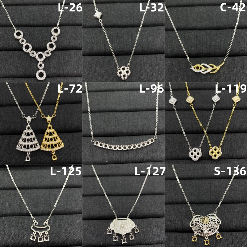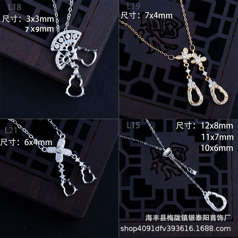 s925银托项链锁骨链佛公项链葫芦空托蛋面未镶嵌翡翠如意银托