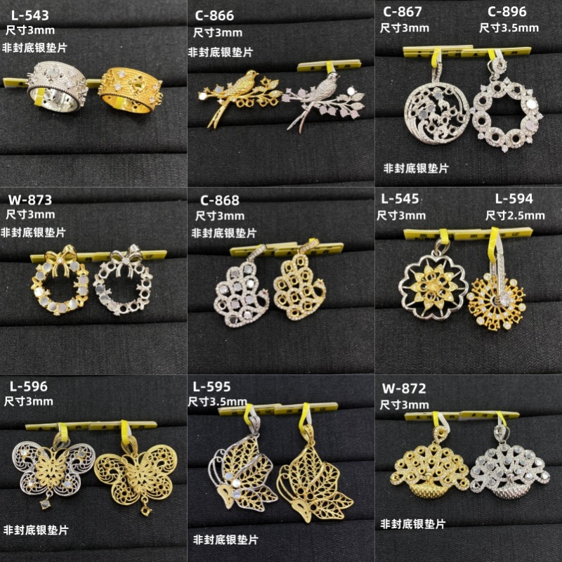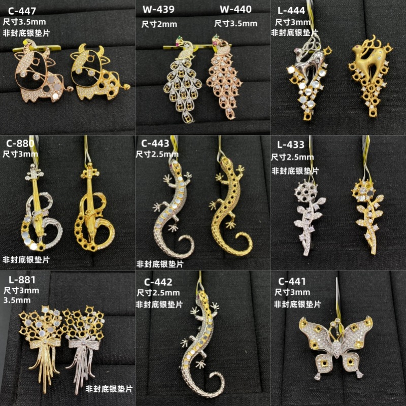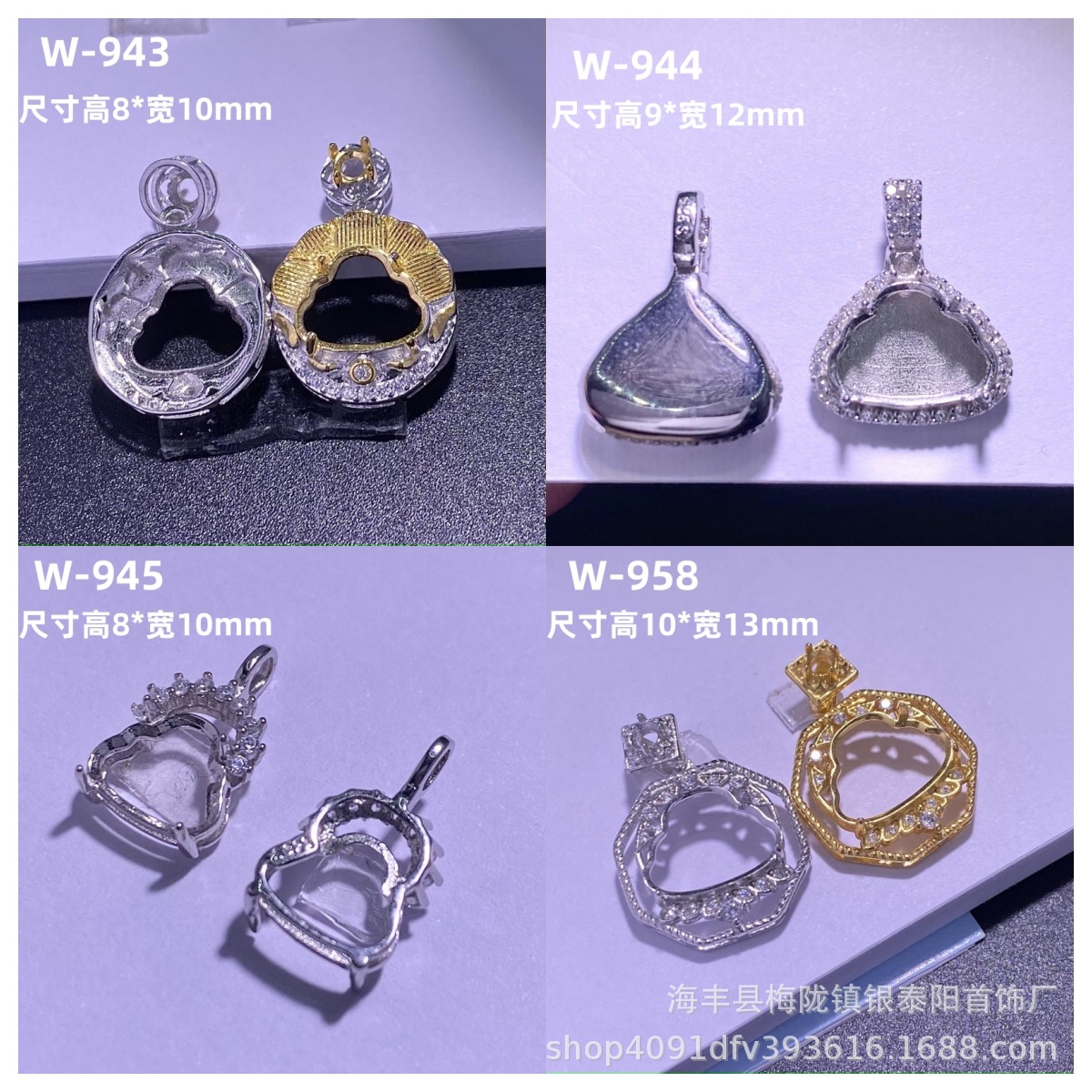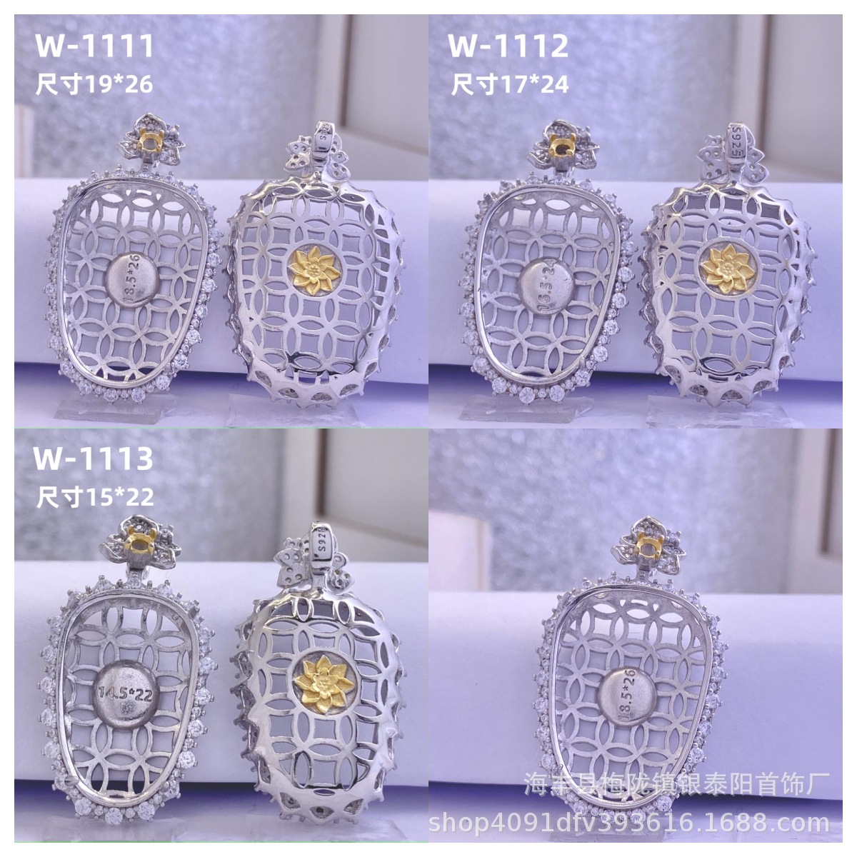 s925纯银托吊坠豪华封底如意未镶嵌银托危料缅料空托吊件现货批发