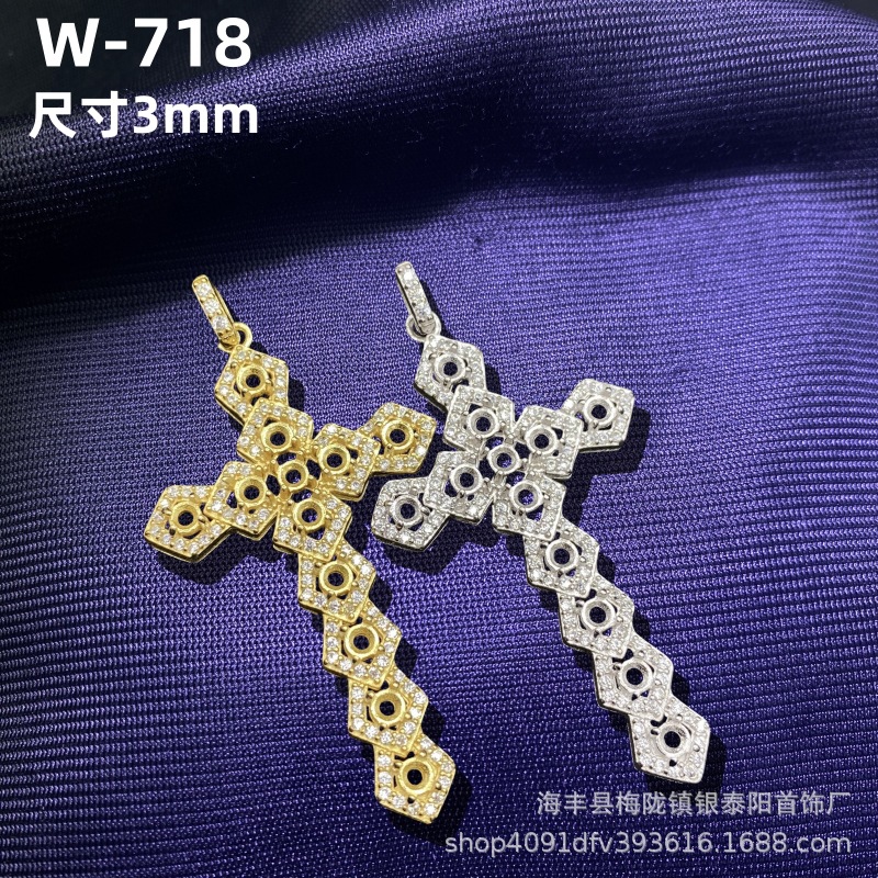 s925银托高级感挂件翡翠危料未镶嵌蛋面缅料diy空托十字架吊坠