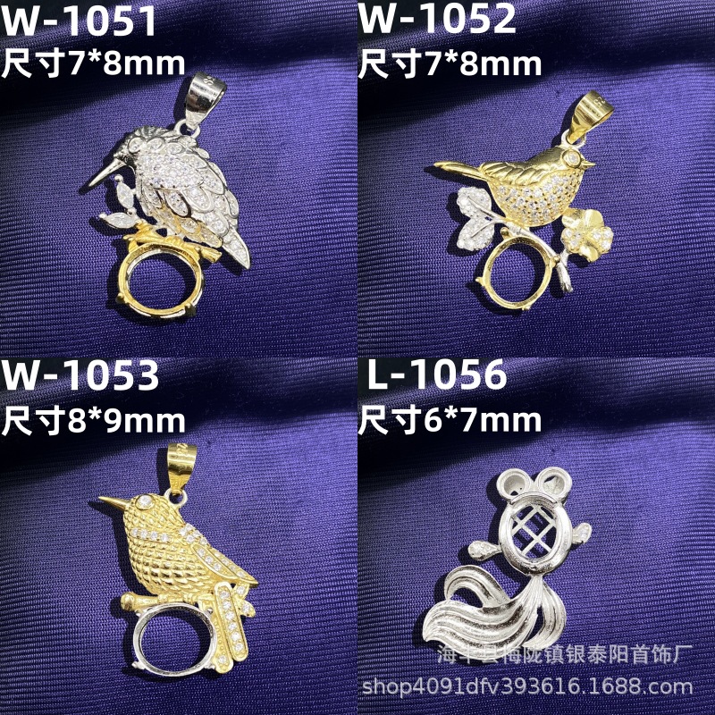 s925银托高级感翡翠危料未镶嵌蛋面轻奢缅料diy空托小鸟吊坠饰品