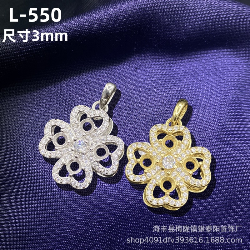 s925吊坠高级感银托翡翠危地马拉蛋面缅料diy空托四叶草吊件
