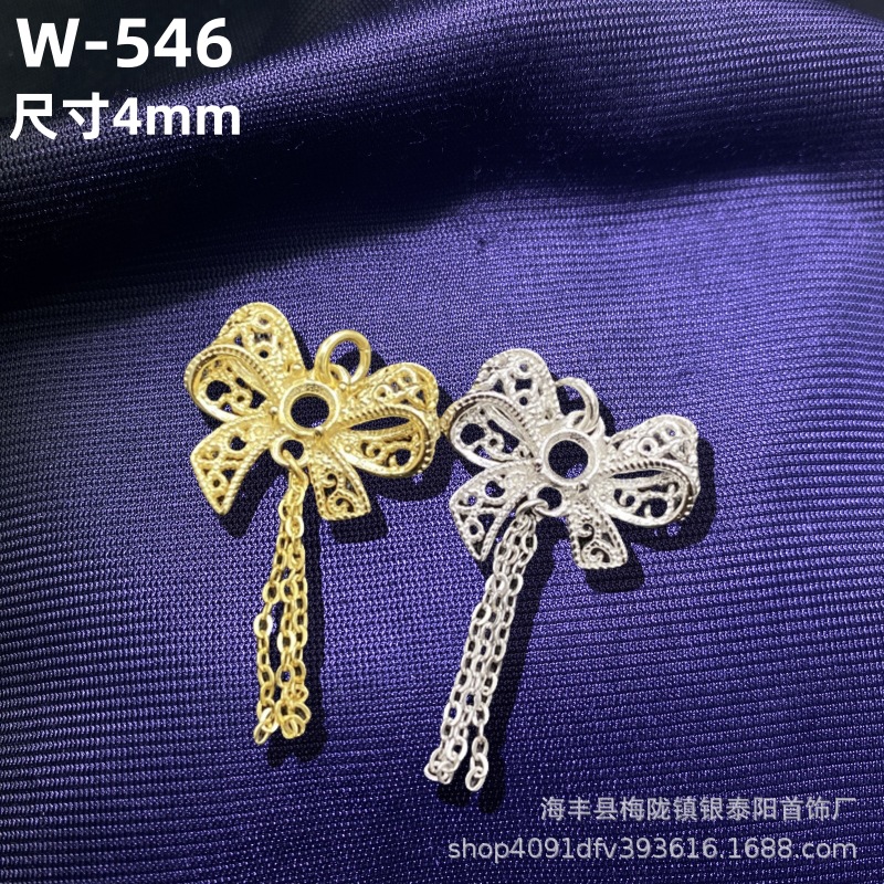 s925银托高级感翡翠危料未镶嵌蛋面缅料diy空托蝴蝶结吊坠挂件