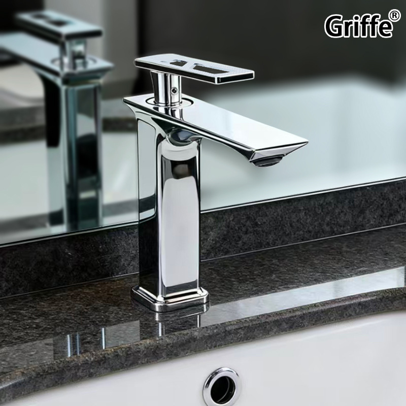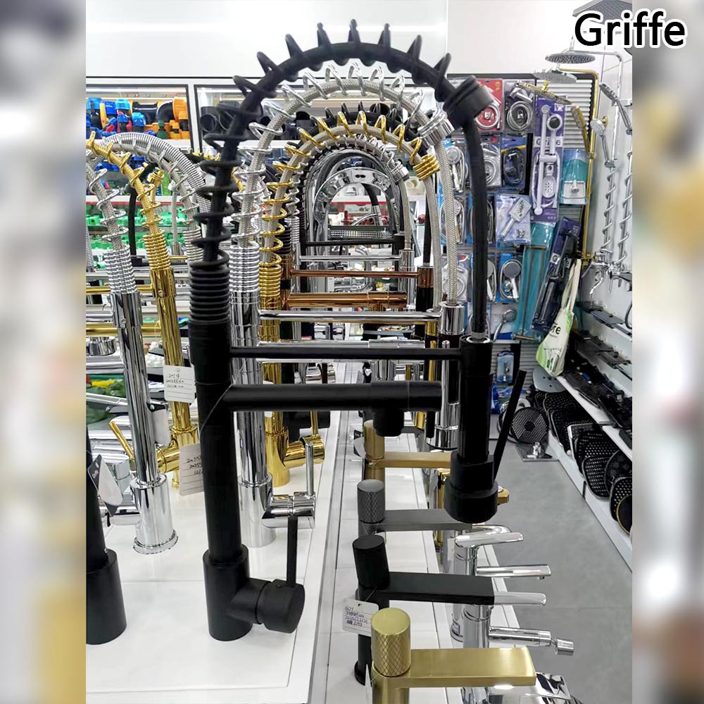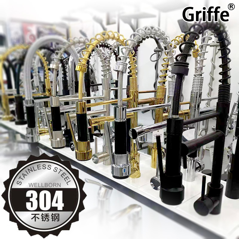 griffe冷热弹簧抽拉式水龙头不锈钢带底板水槽厨房浴室柜台水龙头