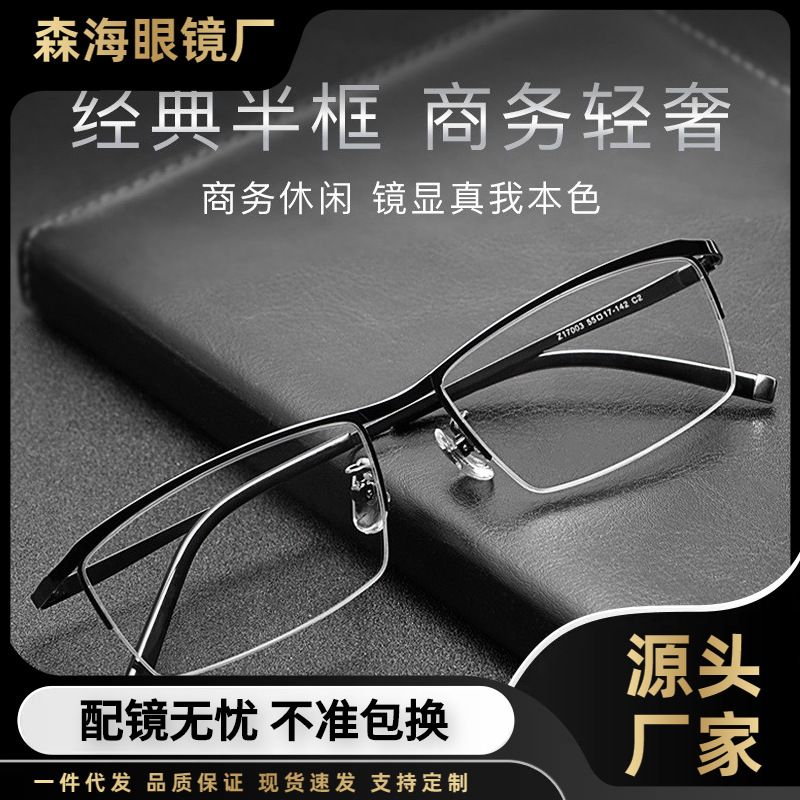 森海新款Z17003超轻商务镜框无磁钛半框眼镜架男士可配老花批发