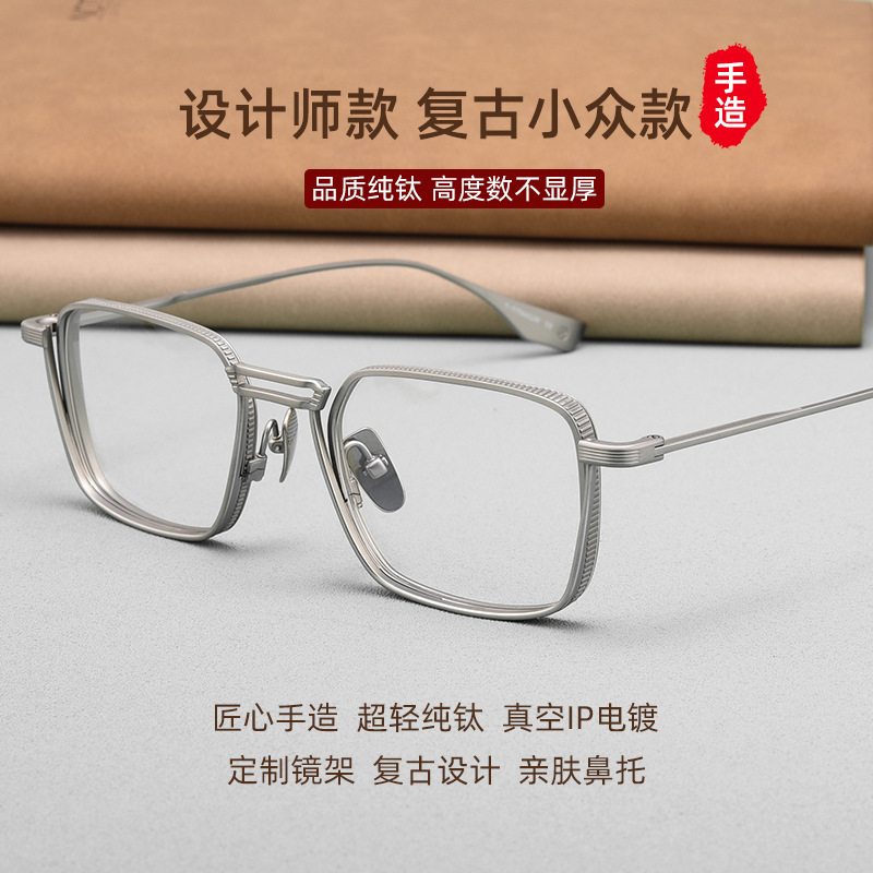 日系复古DTX125超轻纯钛眼镜框设计师款小众手工方框大脸眼镜批发