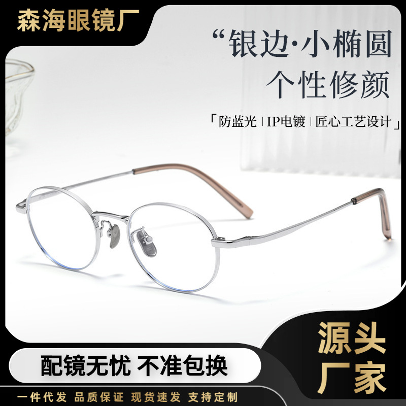 丹阳眼镜S408P超轻镜框纯钛高度数小框宽边女款钛架椭圆镜架批发