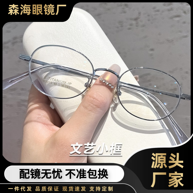 新款小框6047Y文艺小清新纯钛眼镜框复古文艺椭圆防蓝光眼镜批发