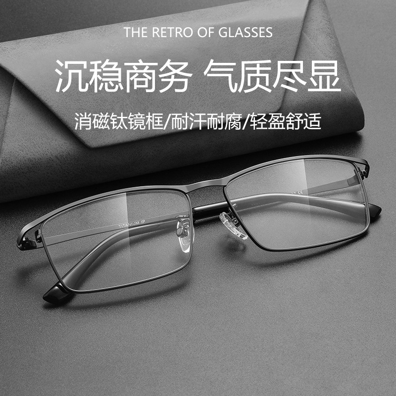 超轻时尚简约商务男士纯钛高端气质方形镜架男丹阳眼镜批发85517