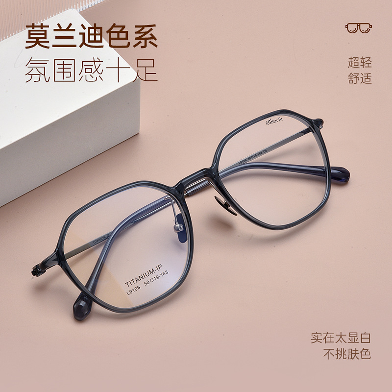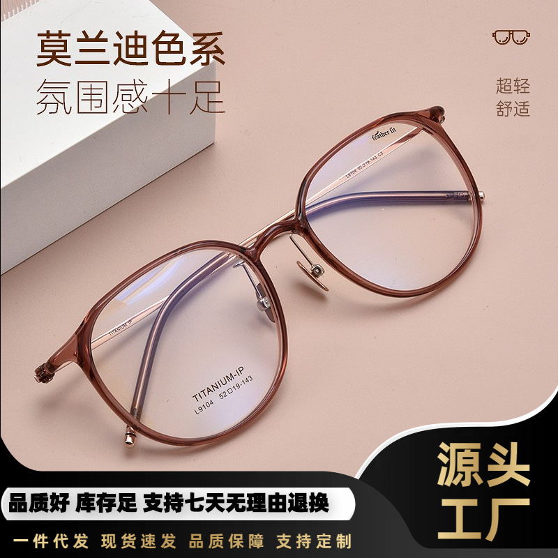 新款超轻羽钛L9104Y网红女款时尚大脸大尺寸眼镜框工厂眼镜批发