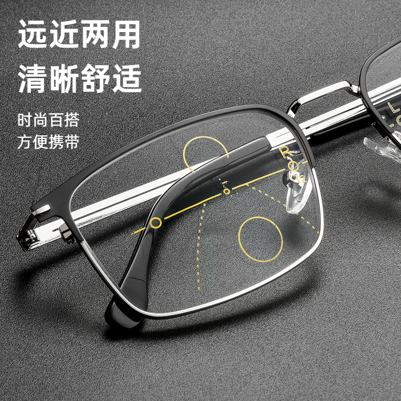 成品老花批发眼镜1673防蓝光渐进远近两用男士轻镜框抗疲劳老花镜