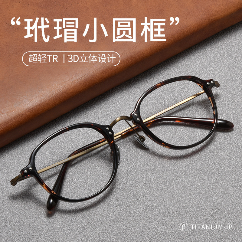 bd6033超轻9g复古小框玳瑁圆框素颜架女高度数纯钛眼镜框工厂批发