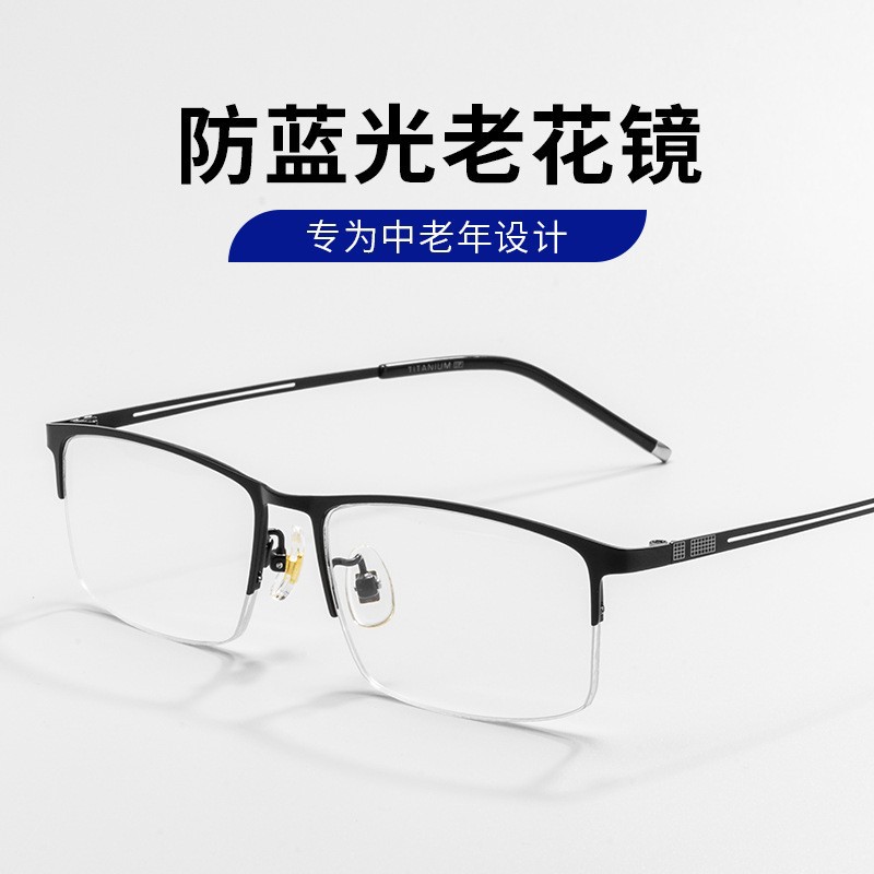 高清男款半框抗疲劳老花眼镜半钛方框商务镜框丹阳镜架批发990070