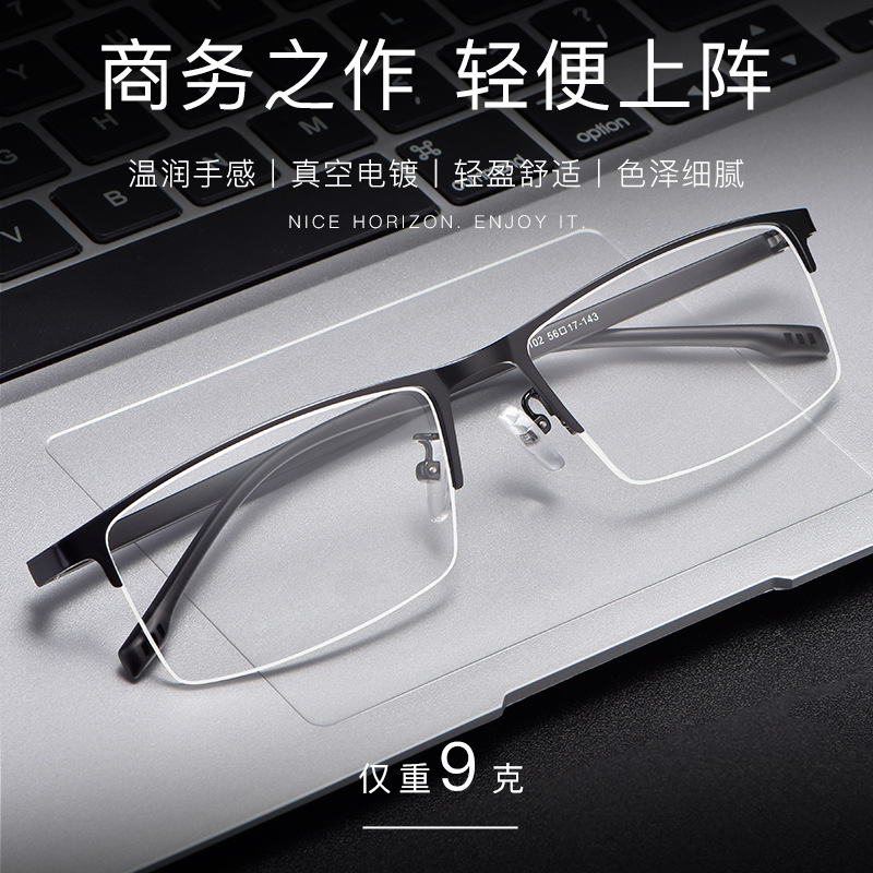 森海9102超轻合金商务半框男士眼镜框可配近视度数丹阳眼镜批发男