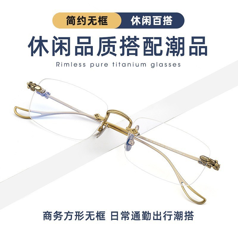 王一博同款纯钛无边框眼镜男潮可配有度数近视眼镜框镜架WYB8808