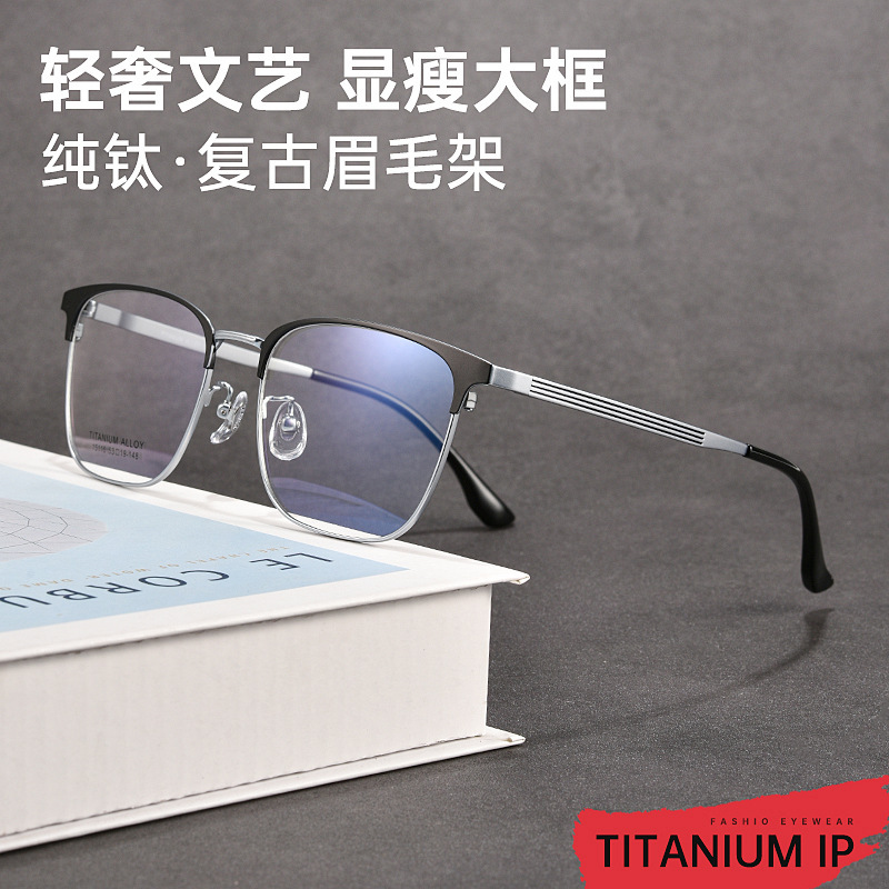 新款9019BT商务超轻纯钛长城腿镜框简约复古男士眉毛眼镜框男批发