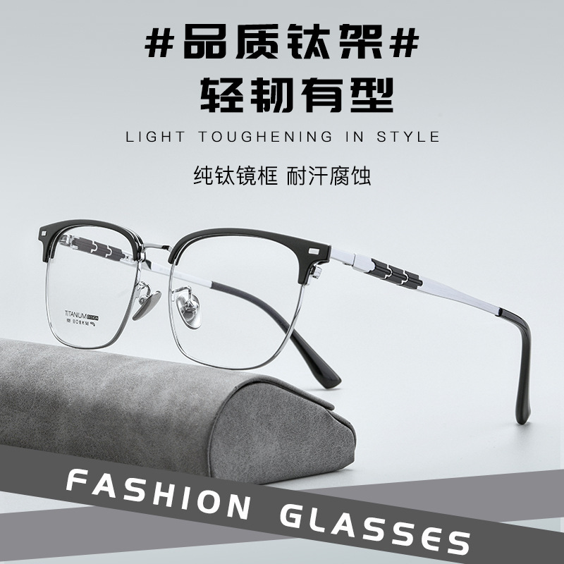 超轻商务半框眼镜框时尚休闲轻奢高级感镜架男丹阳眼镜批发85148