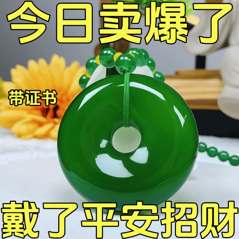 帝王绿平安扣吊坠绿玉髓大号平安无事牌四方来高档玉石项链复古