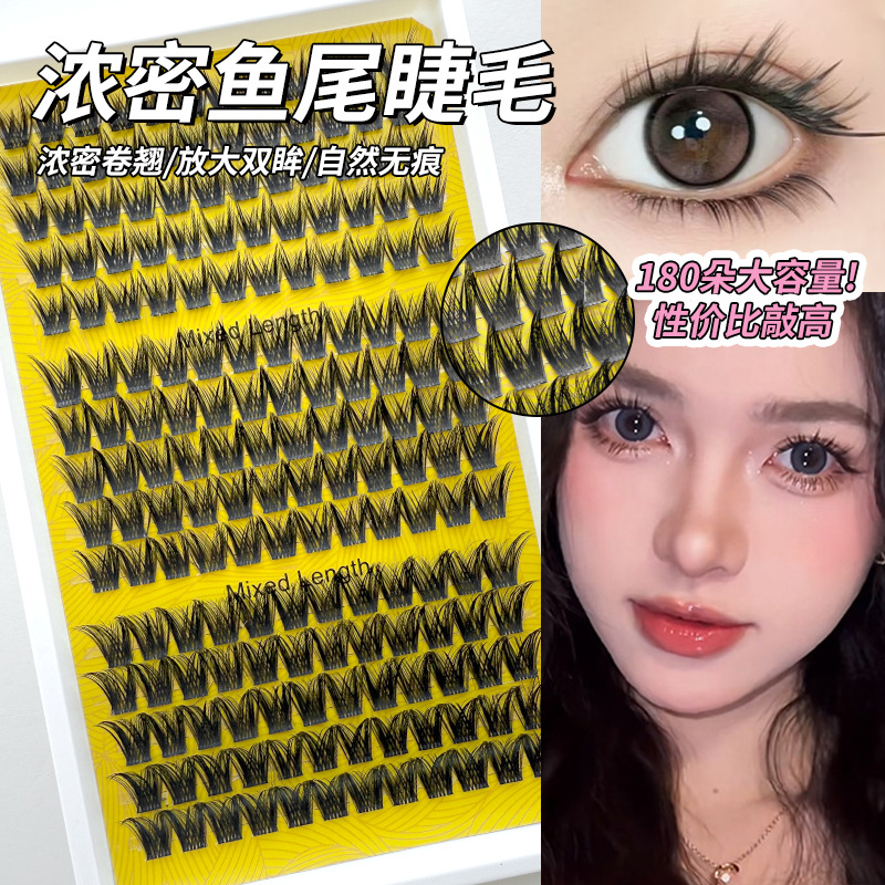 浓密鱼尾假睫毛跨境外贸款式十五排懒人W型纯欲单簇假睫毛批发
