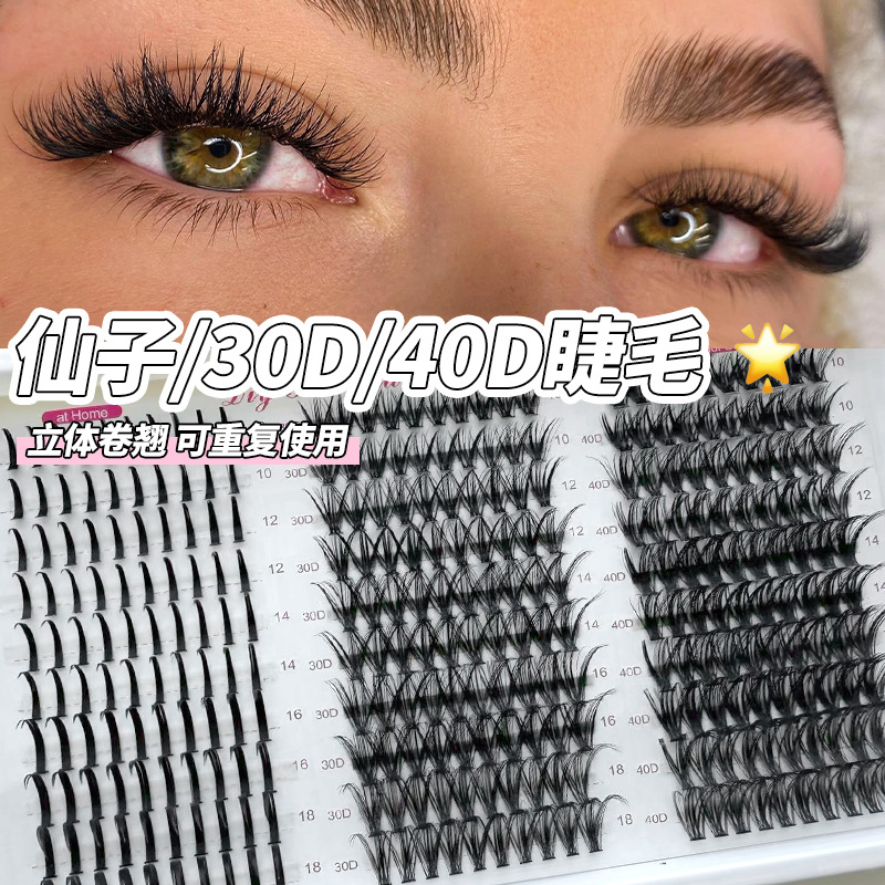 仙子30d40d曲度假睫毛厂家浓密上镜女爱豆纯欲细梗假睫毛批发