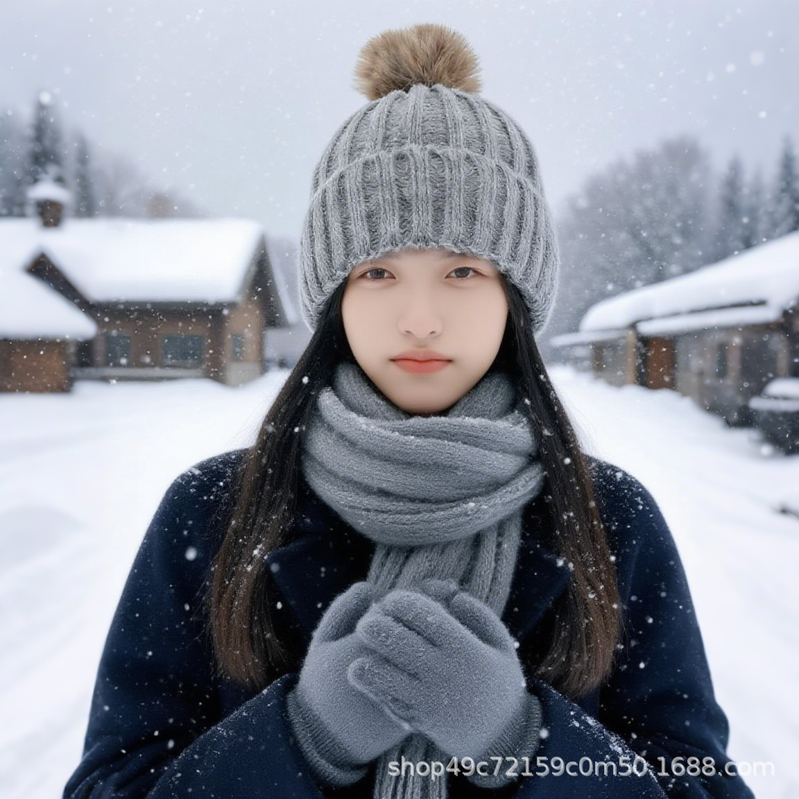 秋冬季帽子女可爱毛绒帽毛绒绒围巾加厚一体围脖骑车保暖护耳帽子