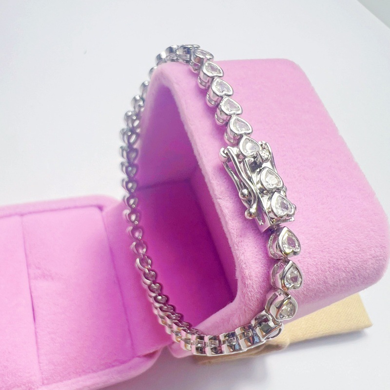 实拍欧美跨境爆款白金网球链心形情侣网球手链嘻哈满钻手链高版本