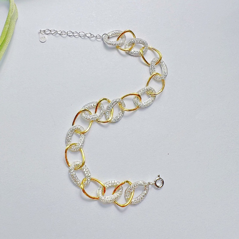 实拍实物S925纯银欧美满钻立体古巴链手链 男女潮人个性夜店蹦迪