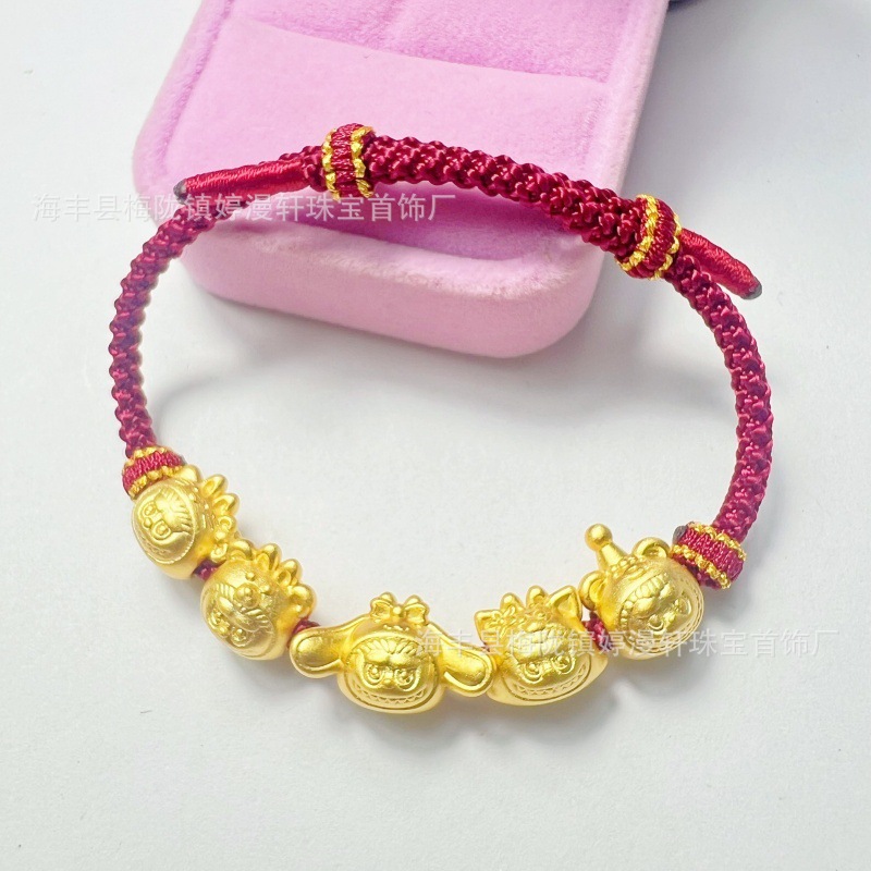 高级设计卡通拉布布通孔珠子S925纯银镀24K串珠串饰转运珠男女