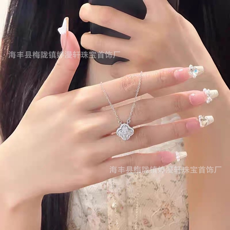 实拍实物S925纯银韩版小众爱心锆石四叶草项链女幸运草吊坠满钻