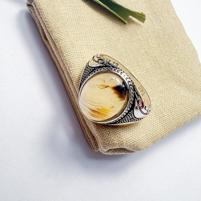 尼泊尔风格戒指S925纯银镶嵌主石男戒指简约复古高级设计时尚指环