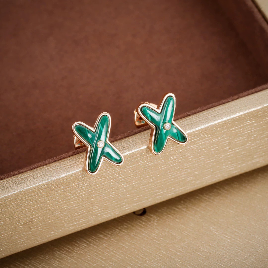 实拍S925纯银玫瑰金尚美交叉孔雀石个性18K时尚耳环气质简约厂家