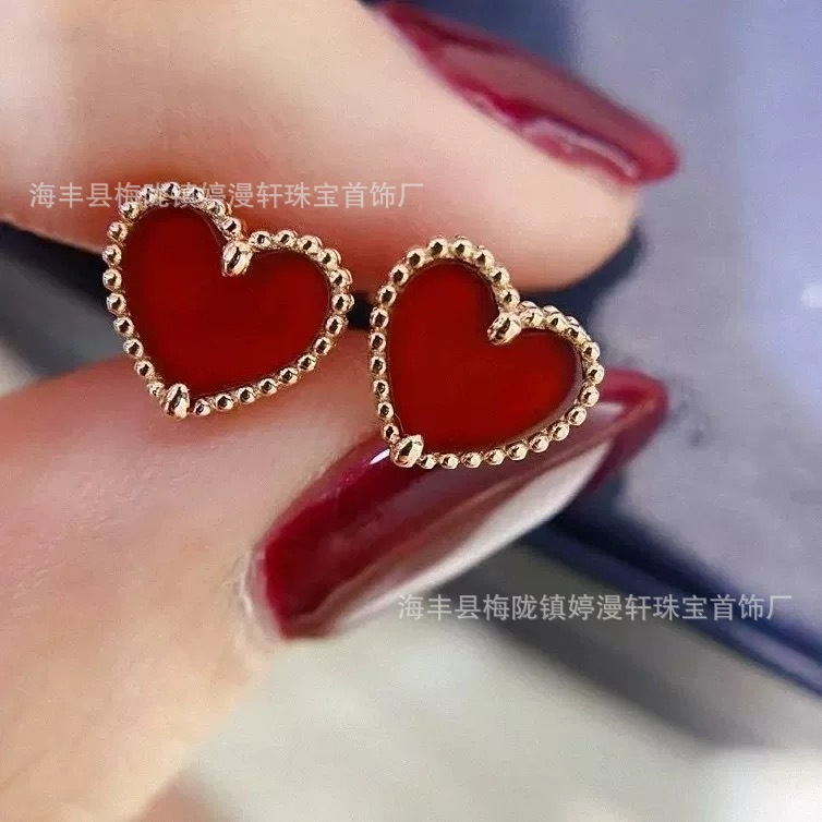 实拍S925纯银韩版精致时尚红色爱心耳钉女气质简约耳环桃心形高级