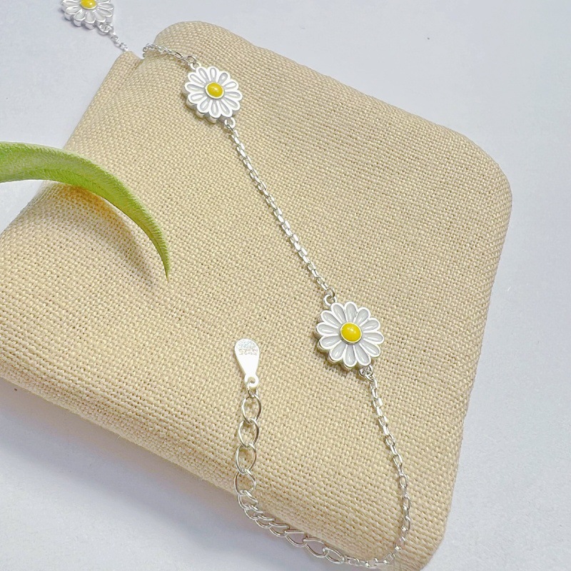 实拍实物S925纯银小清新雏菊手链女ins风设计感小众彩色滴油菊花