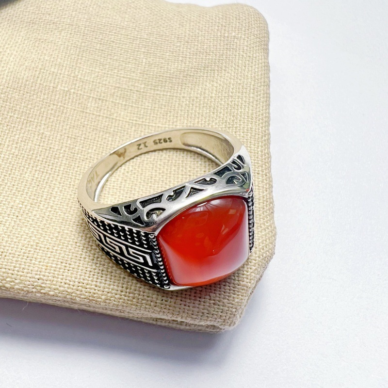 新款南红戒指925纯银男指环高级设计手饰批发天然红玛瑙气质复古