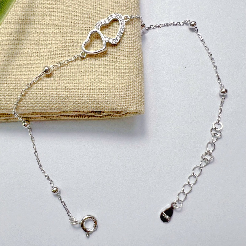 实拍实物s925纯银闪亮锆石双心形手链轻奢百搭气质爱心美少女甜美