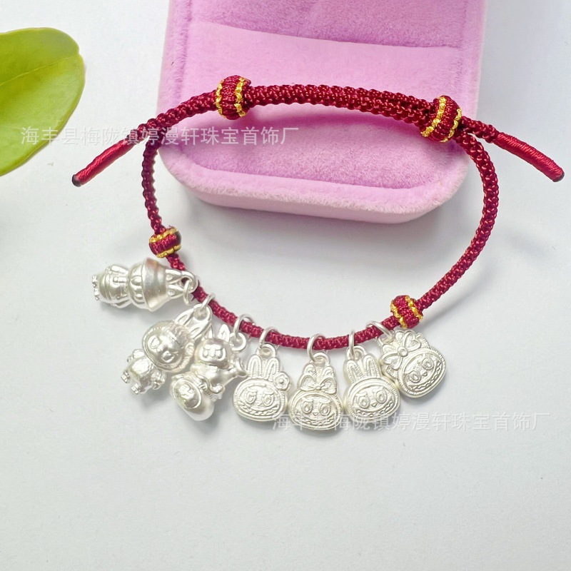 S925纯银高级设计爆款时尚设计拉布布男女银串珠手串手工编绳女厂