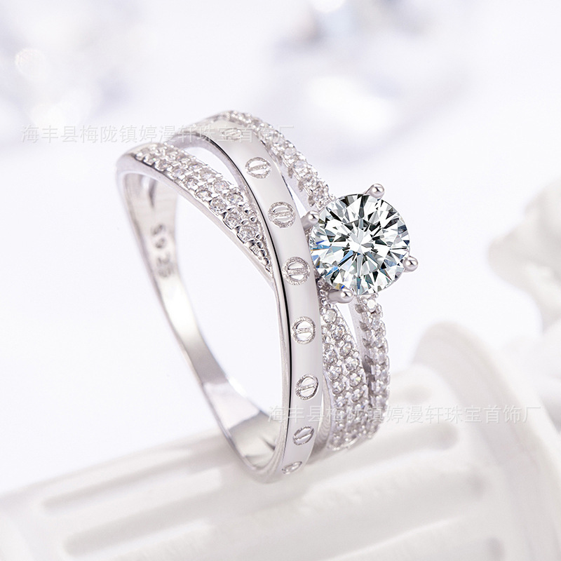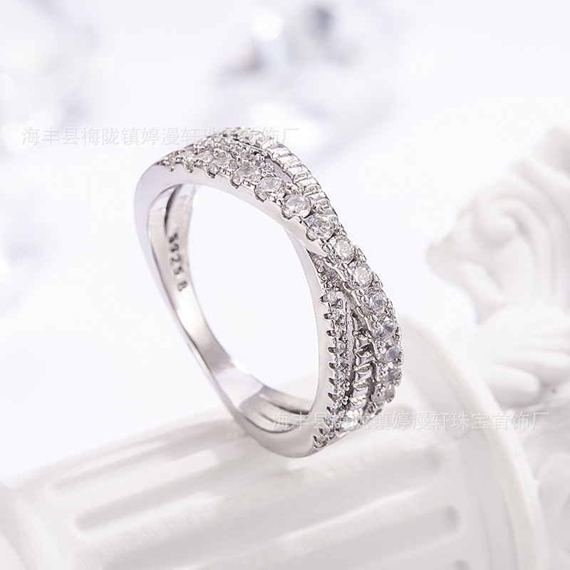 新品S925纯银直播 ins风交叉满钻高级设计戒指女排戒闺蜜礼物简约