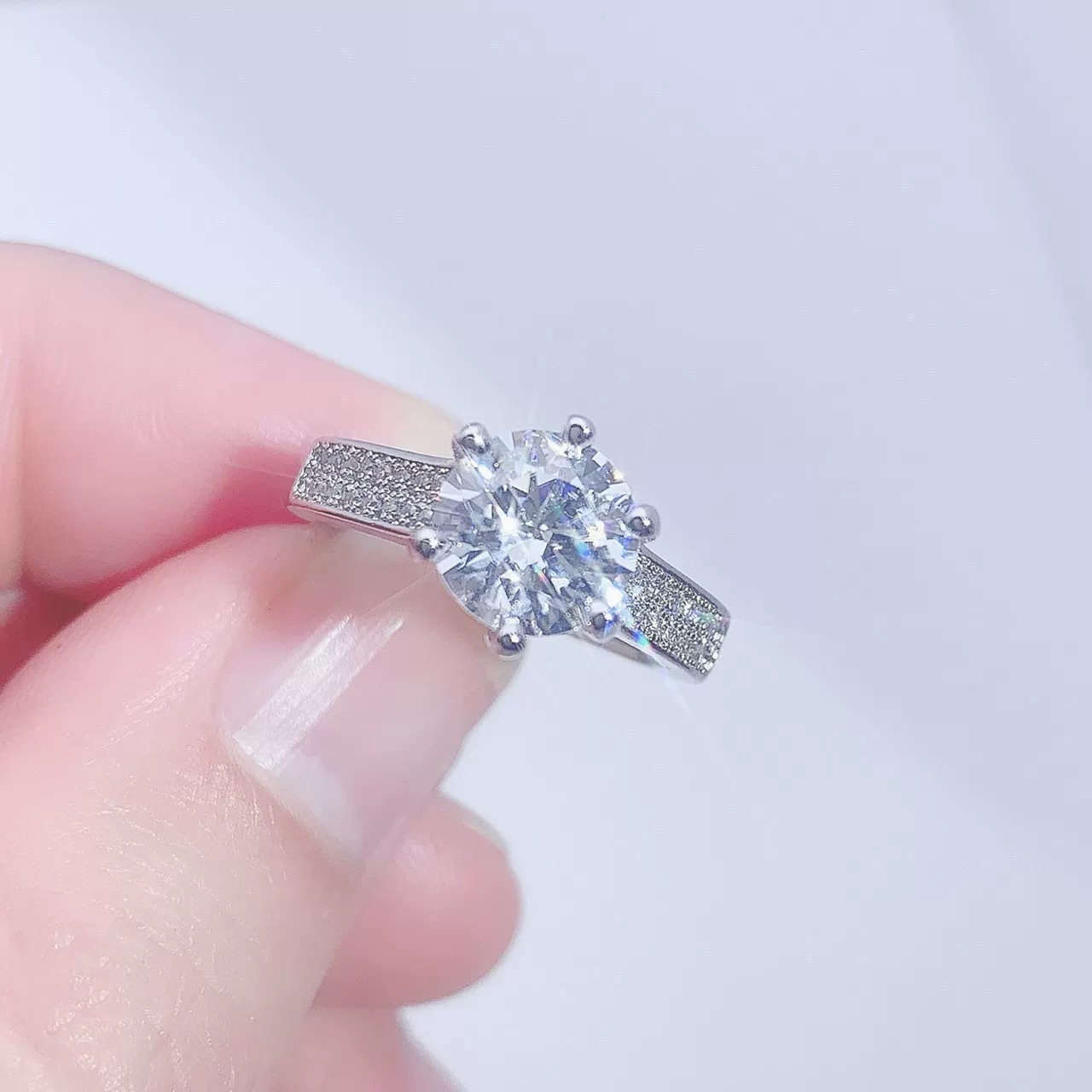 新款S925纯银轻奢气质百搭四爪园锆石戒指女时尚个性设计高级感