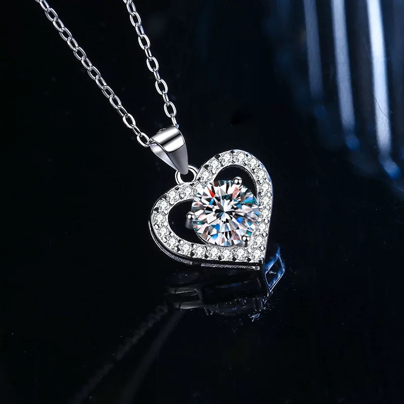 S925纯银高级设计莫桑石心形吊坠项链女轻奢锁骨链爱心时尚气质