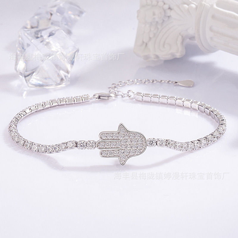 新款S925纯银欧美手掌满钻手链送女友闺蜜生日轻奢精致小众设计礼