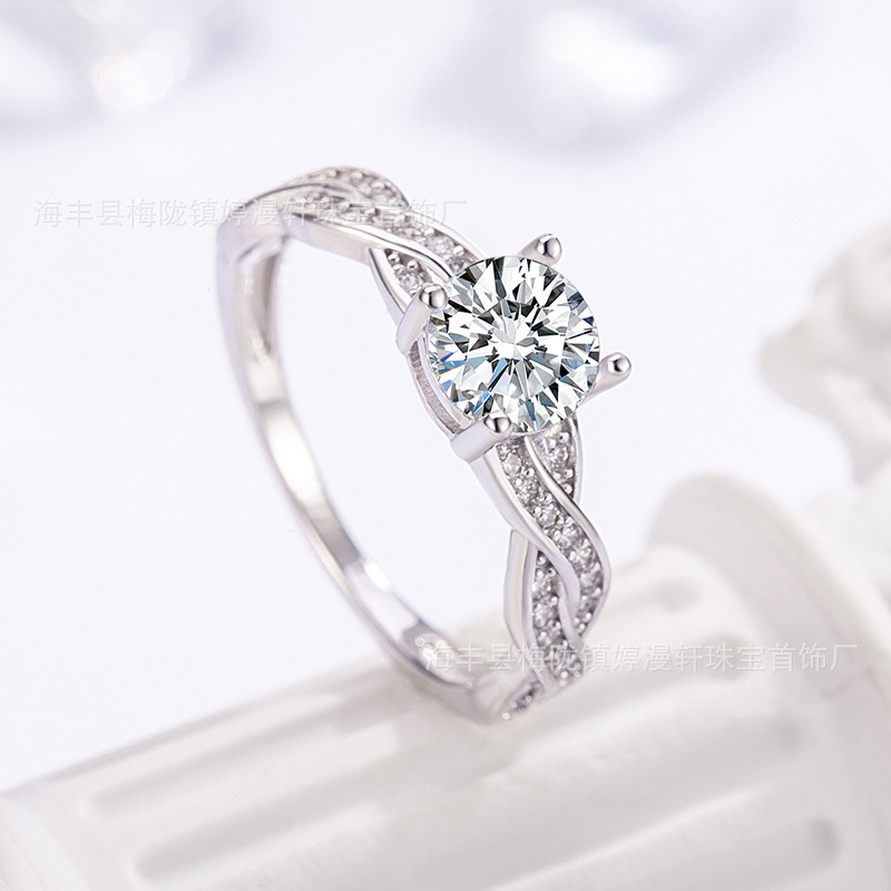 新品S925纯银锆石女戒指指环简约时尚款百搭婚礼送女友新娘首饰品