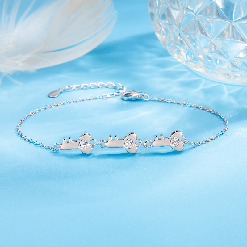 新款S925纯银韩版简约三把钥匙手链送女友ins小众设计清新森系饰