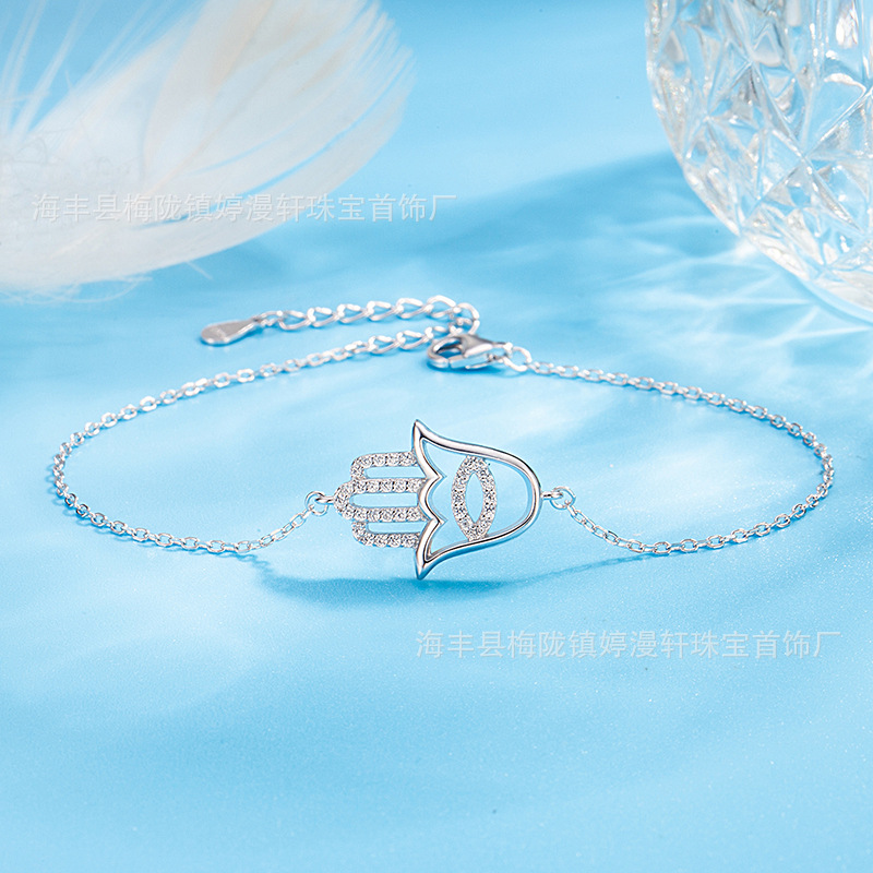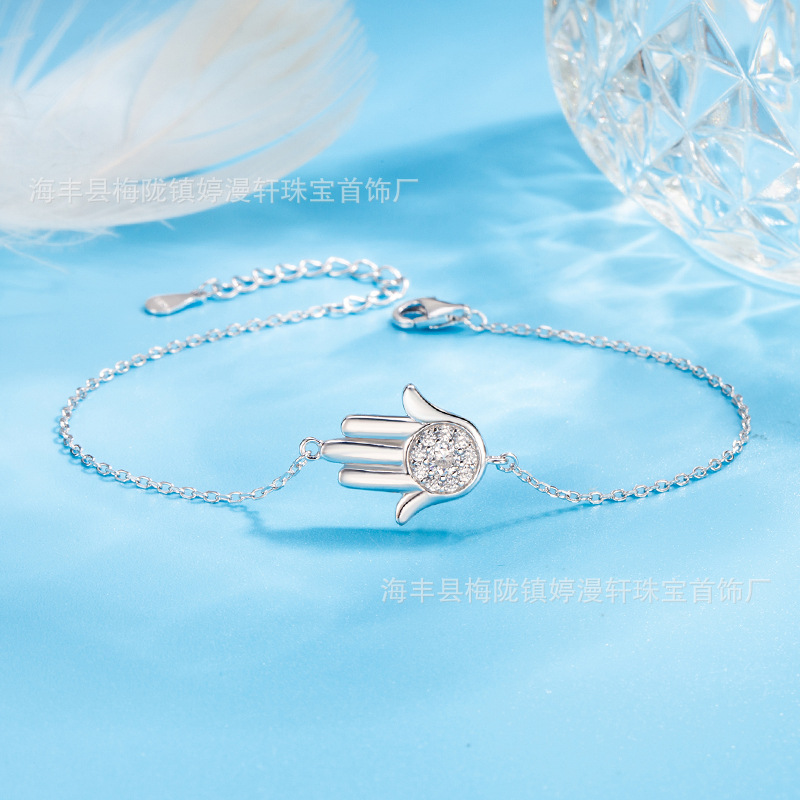 新品S925纯银外贸热销不创意手掌吊坠手链个性女士手链手镯女设计