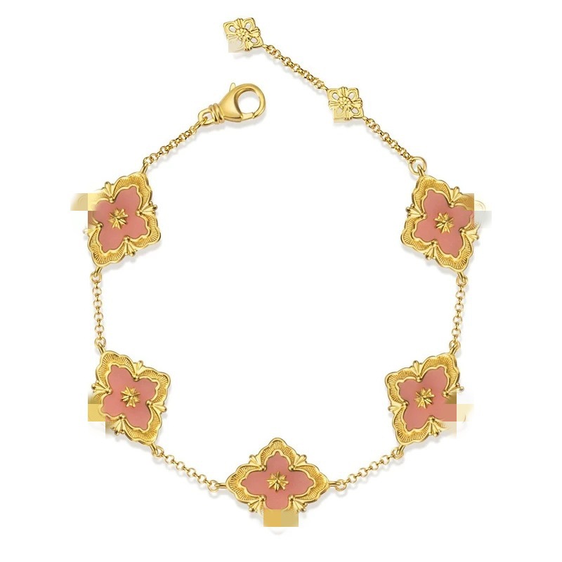 新品S925纯银高级设计五花手链寓意复古拉丝轻奢宫廷优雅金色镶钻