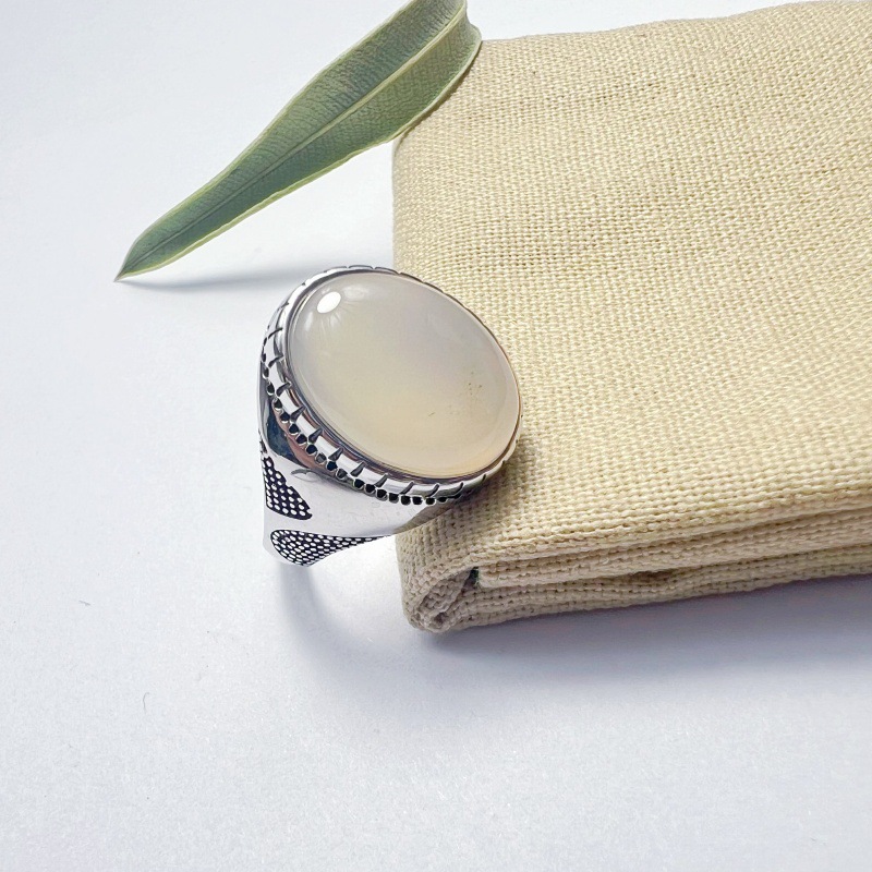 新款S925银个性玉石戒指男高级设计时尚气质优雅指环食指蛋形复古