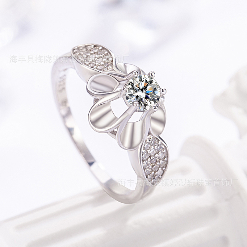 新品S925纯银花朵主石戒指送女友闺蜜礼物高级设计小众简约时尚