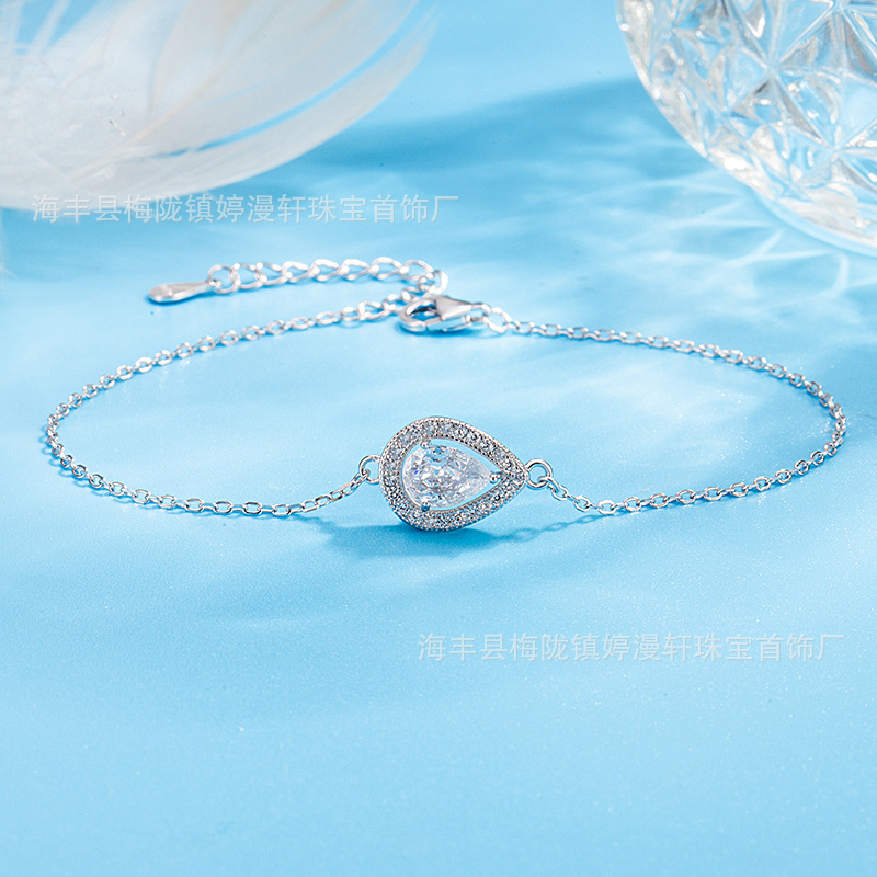 S925纯银水滴形主石满钻手链女跨境流行轻奢优雅手环时尚高级感