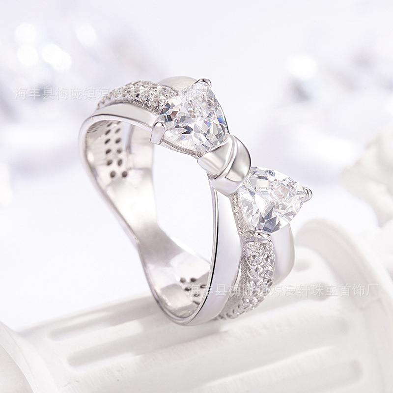 新款直播S925纯银时尚镶嵌八心八箭浩石双臂满钻高级设计戒指女红
