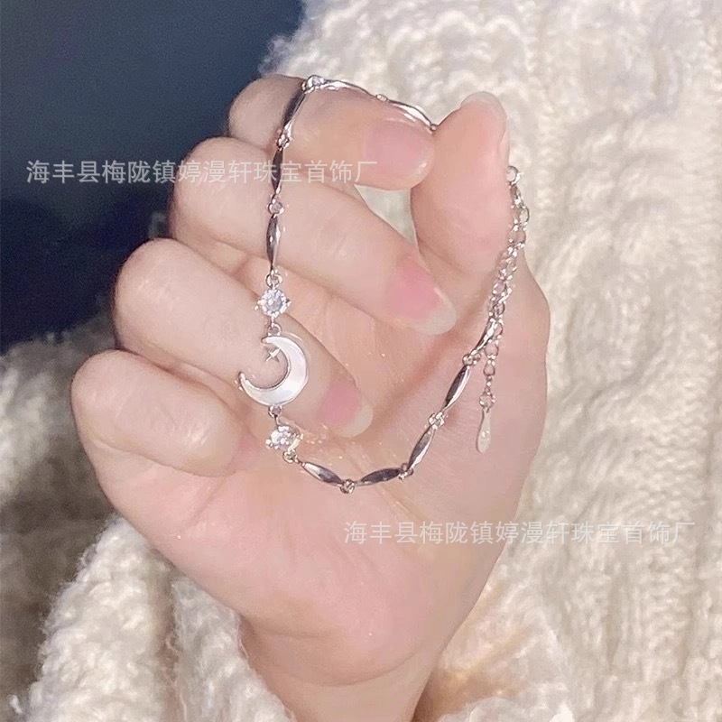 新品S925纯银贝母月亮手链女纯银精致轻奢小众高级感手镯女友闺蜜